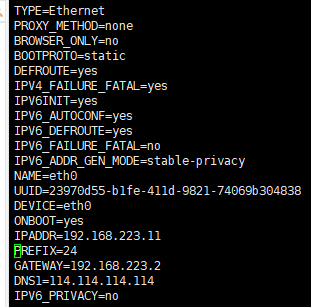 然后进入配置页面把BOOTPROTO=none 改成 static 这样 静态IP就设置好了