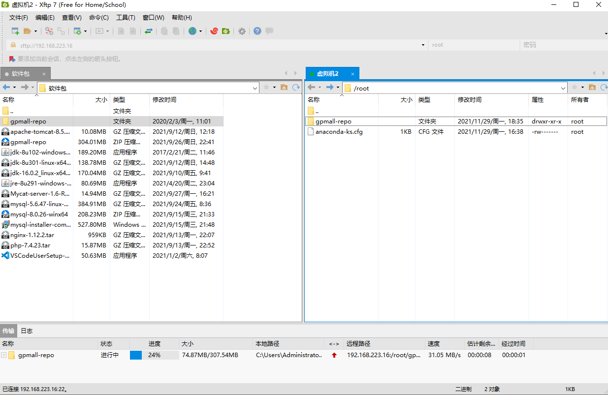 用xftp上传到root目录下