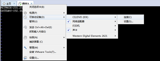回到VMware Workstation界面,将CD设备进行连接,右击打开快捷菜单,选择“可移动设备”→“CD/DVD(IDE)” →“连接”命令,如图所示。