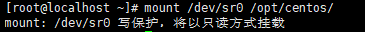 mount /dev/sr0 /opt/centos #CD设备挂载到/opt/centos(可自行创建)目录下