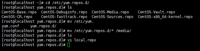 mv /etc/yum.repos.d/* /media/ #将etc下的yum.repos.d下的所有仓库移动到media