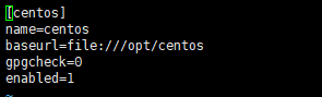 vi /etc/yum.repos.d/local.repo #配置yum源,在etc下yum.repos.d下创建local.repo 配置yum源注意结尾一定要是.repo,名字随意。