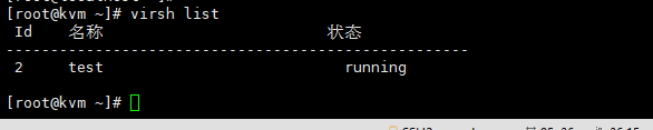[root@kvm ~]# virsh list //查看虚拟机列表,只能看到正在运行的虚拟机