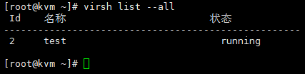 [root@kvm ~]# virsh list --all //查看虚拟机列表,包括未运行的虚拟机