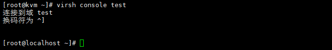 [root@kvm ~]# virsh console test //console后加虚拟机名称