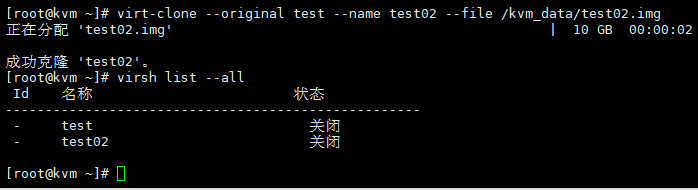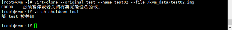 关闭后再克隆就成功了,virsh list --all 查看虚拟机列表