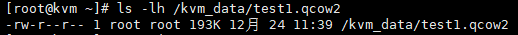 [root@kvm ~]# ls -lh /kvm_data/test1.qcow2