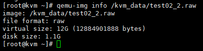 [root@kvm ~]# qemu-img info /kvm_data/test.img //查看虚拟机磁盘格式