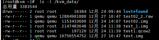 [root@kvm ~]# ls -l /kvm_data/ //查看磁盘所属用户和组