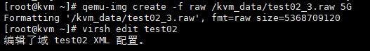 找到上面这部分内容将qcow2修改为raw,kvm_data/test02.img改为/kvm_data/test02_2.raw 然后启动test02虚拟机