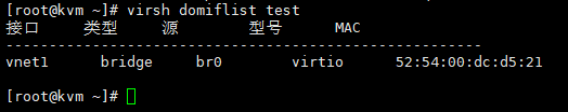 [root@kvm ~]# virsh domiflist test //查看网卡列表