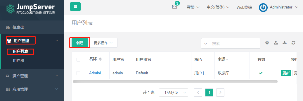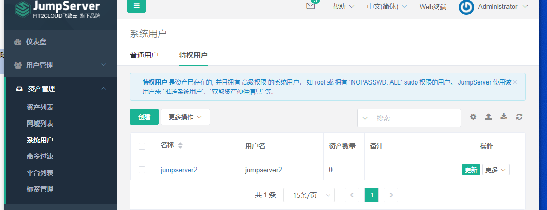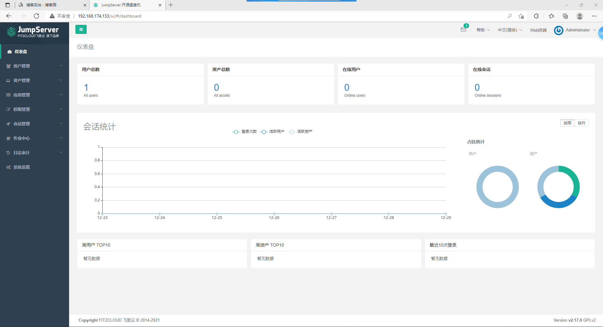 出现该界面即登录成功。jumpserver完整的搭建成功。