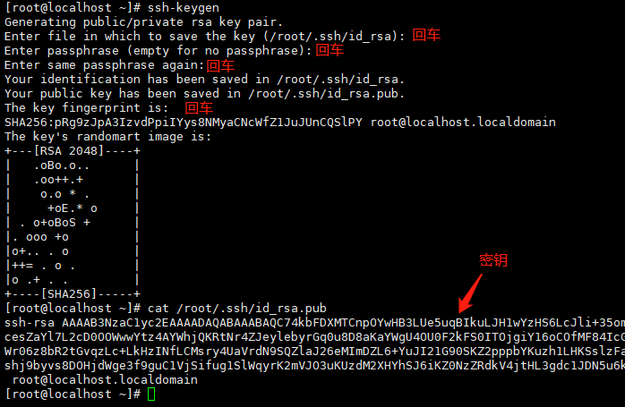 ssh-keygen #生成ssh密钥,公钥。生成在/root/.ssh/下