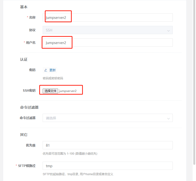 虽然我们是运维人员,但是也需要给其他人一些账号,账号根据工位权限也不一样。这个用户是用来登录jumpserver堡垒机的。