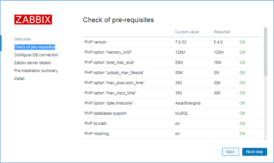 编译安装完成后,配置Nginx虚拟主机,修改PHP相关参数,完成Zabbix Web界面的部署安装。
