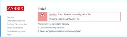 根据提示下载,并把它放到指定路径/data/nginx/zabbix/conf/zabbix.conf.php。