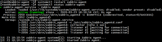 # systemctl restart zabbix-agent