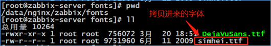 从Windows控制面板找到字体,选择字体文件,拷贝到Zabbix服务器的/data/nginx/zabbix/fonts目录下。