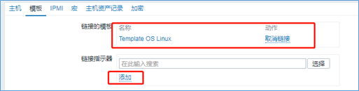 接着配置主机链接模板,选择Template OS Linux,单击“添加”按钮。