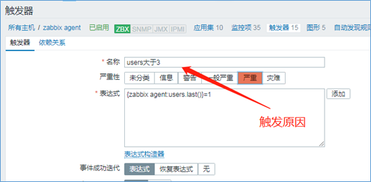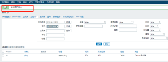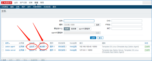 流程:配置→主机→监控项→创建监控项;配置→主机→触发器→创建触发器。