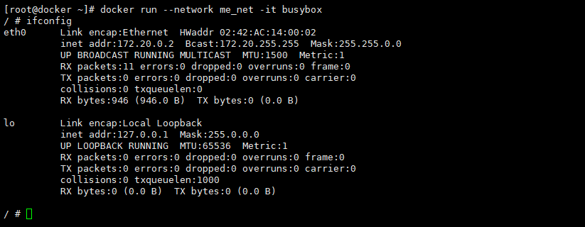 创建me_net⽹络,系统默认IP地址段⾃动向后递增