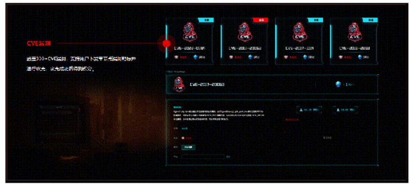 其中,漏洞环境多为历史CVE漏洞以及国内热点漏洞,包括浏览器、数据库、网络设备、Web等方向,用户可以根据自身培训、验证等需求,实时复现漏洞场景。