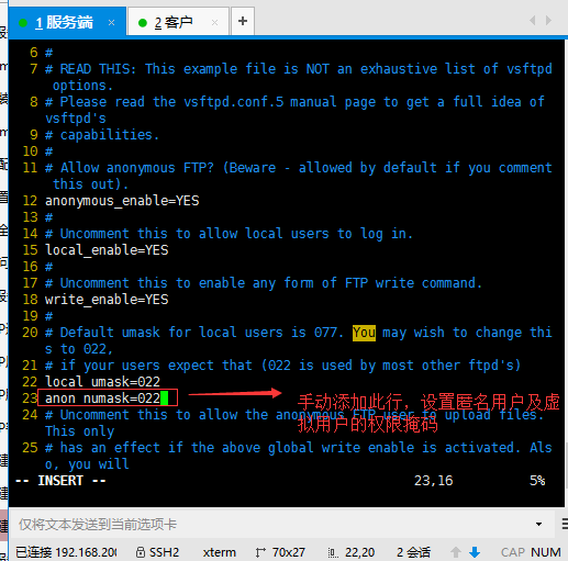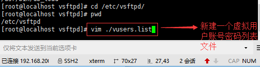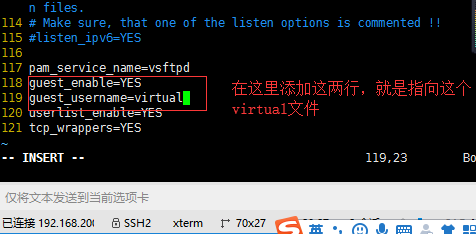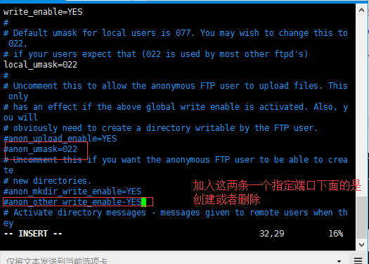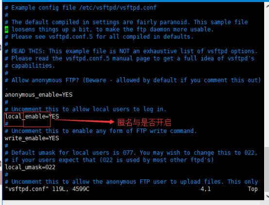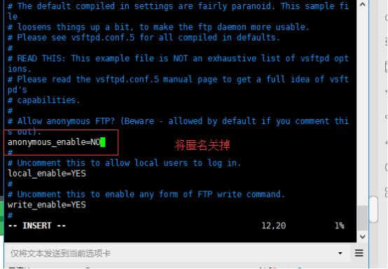然后vim进入/etc/vsftpd/vsftpd.conf配置文件进行修改配置