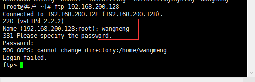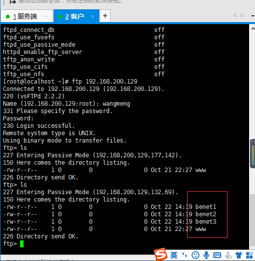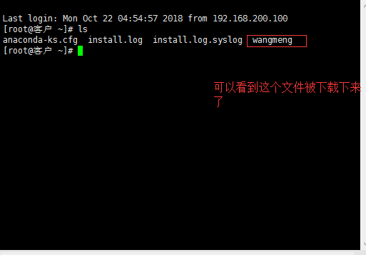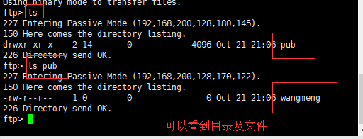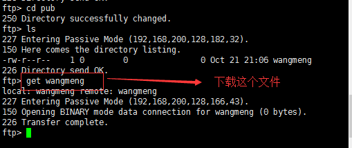 在服务端/var/ftp/pub下创建一个wangmeng的文件