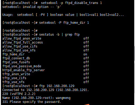 如果建立本地连接错误,则进行以下操作,这些是因为有个ftp服务下的家目录配置文件没有开启,我们需要输入一些命令将它开启。