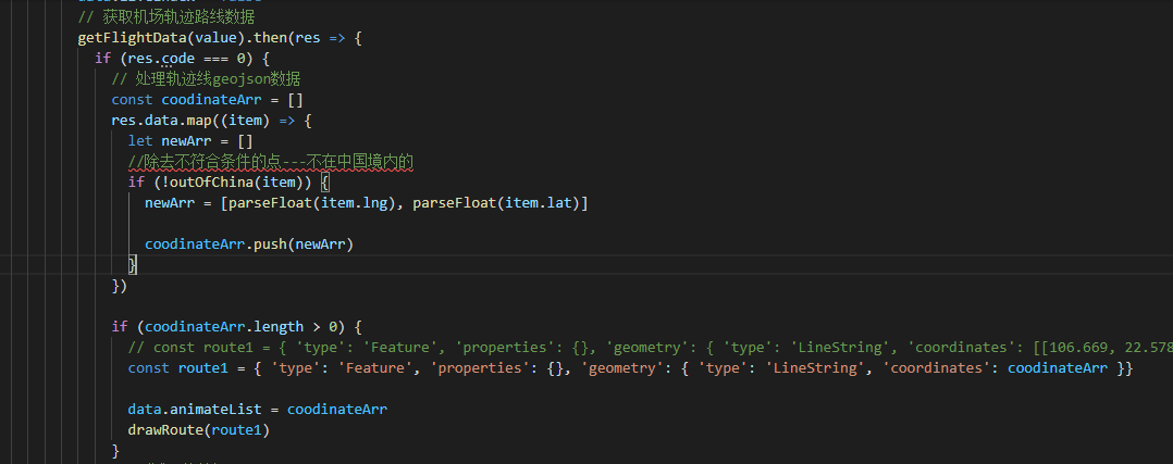 outOfChina是用于判断点是否在中国境内,route1是处理好的轨迹数据