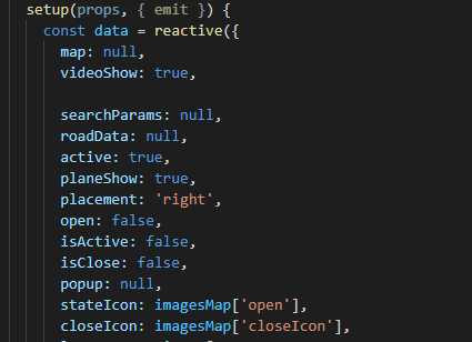 这个是用vue3写的 上面定义的两个变量是在这个data里面定义的