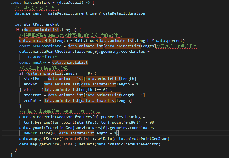 根据这个方法来写轨迹,视频组件用的可能不一样,但是只要找到能一直获取到currentTime与duration的方法就好,代码写的挺仔细的 data.animateList在上面贴的代码里有
