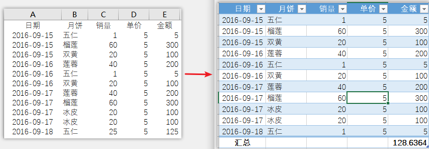 注:智能表格有一个限制条件,数据表必须是清单型的数据记录(一行一条记录,不能合并表格)