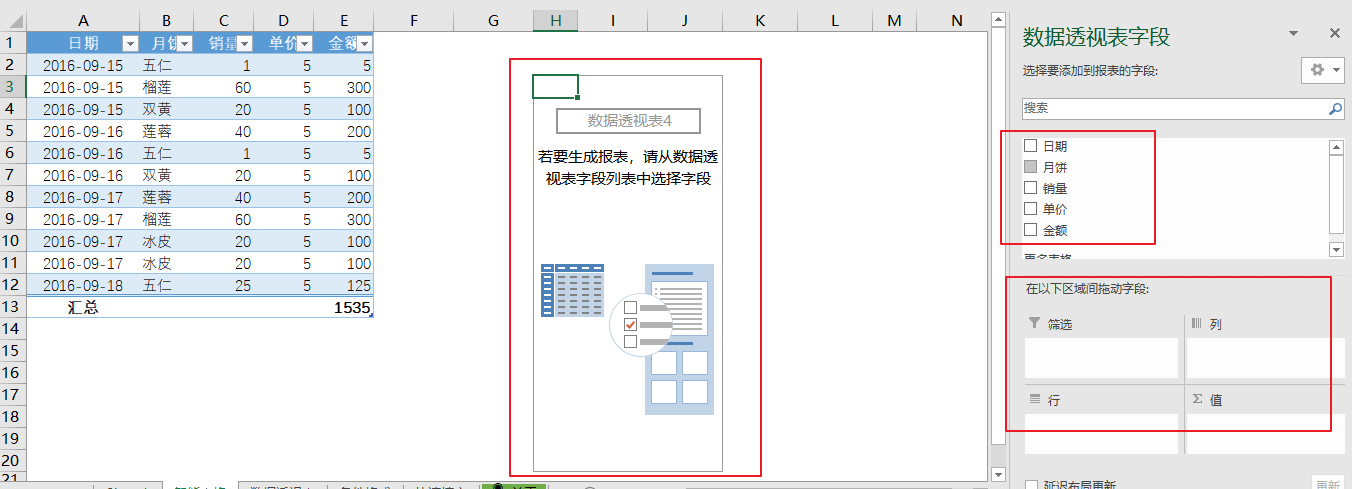 3. 创建成功后如下所示,通过单据和拖拽,完成各种统计需求