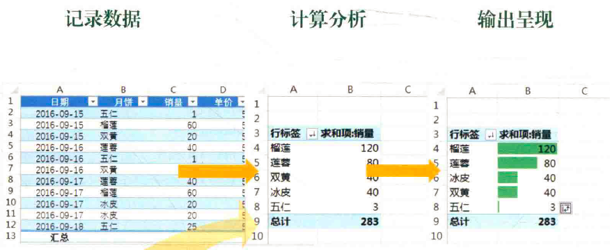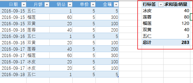 问题2:以月饼销售数据为例,如何快速统计每一种月饼的总销量?为下次进货提供依据