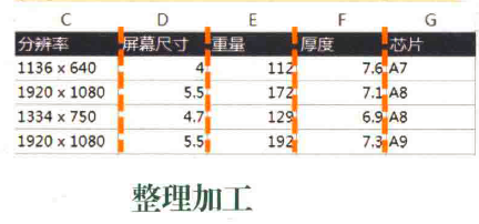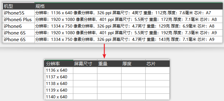 问题3:如何处理如下数据,将分辨率、屏幕尺寸等信息单独放到一列中