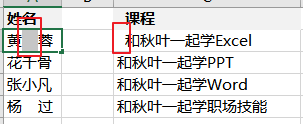 在数据录入时,用空格对齐文本(名字中间加空格、文字前面加空格)