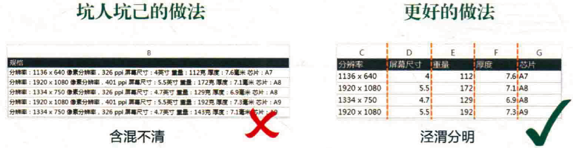 作为数据仓库,Excel是以单元格为最小的存储单位。只有把信息拆分到不能再拆,放进单元格中,才可以灵活地进行排序、筛选、统计等各种数据处理。