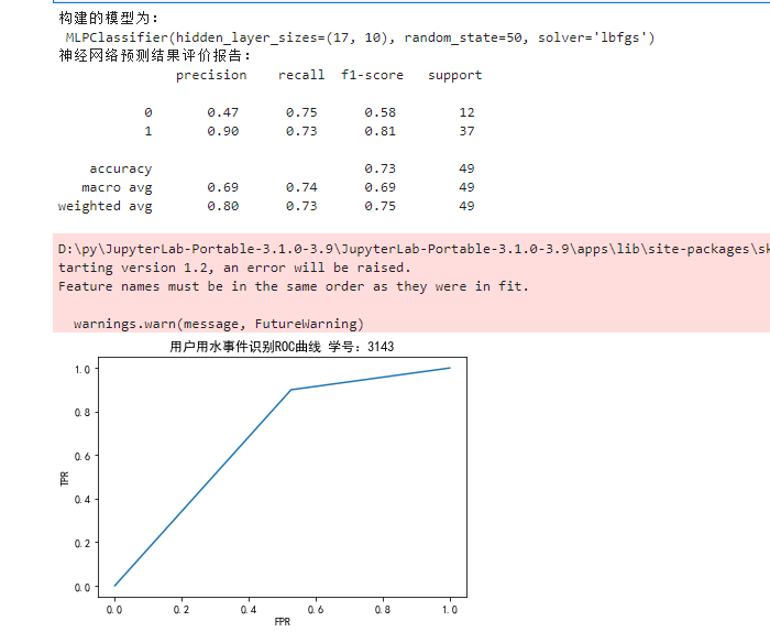 #plt.savefig('D:\PhotoWork\大数据\数据\第七次\用户用水事件识别ROC曲线.png') # 保存图片