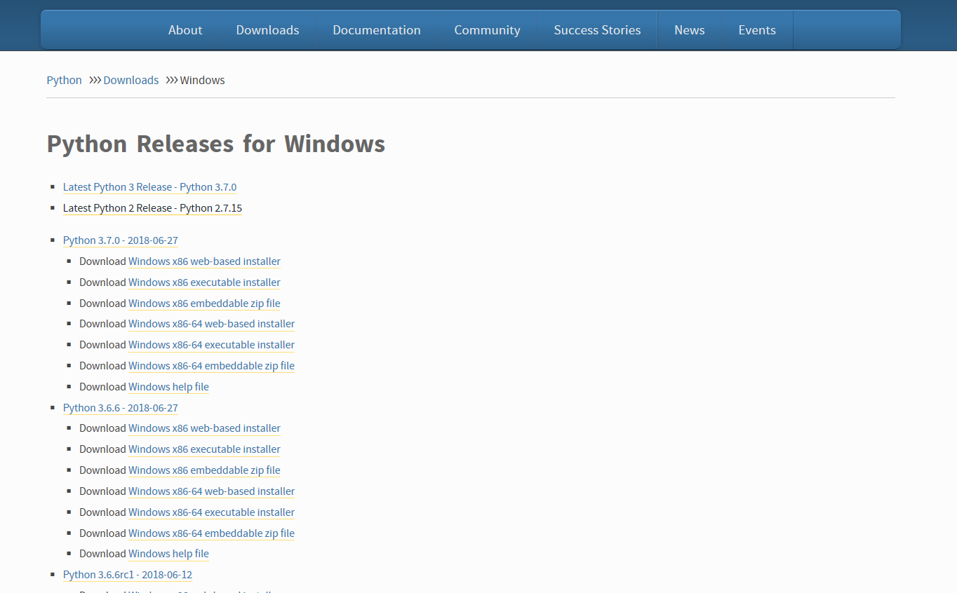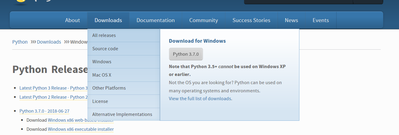 打开官网后选择downloads 会出现下面图片的界面,选择你要的环境进行安装吧,由于本人的电脑是Windows系统所以这里只有Windows系统的python安装。选择版本,下载到本地后进行安装吧,