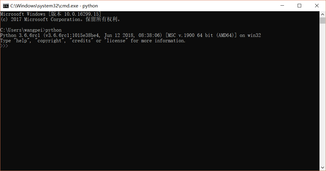 当你安装完python后,按住 视窗键+R,在出现的小弹窗里输入cmd进入命令操作界面,然后输入python,显示出下面界面显示的就说明你已经安装成功了,