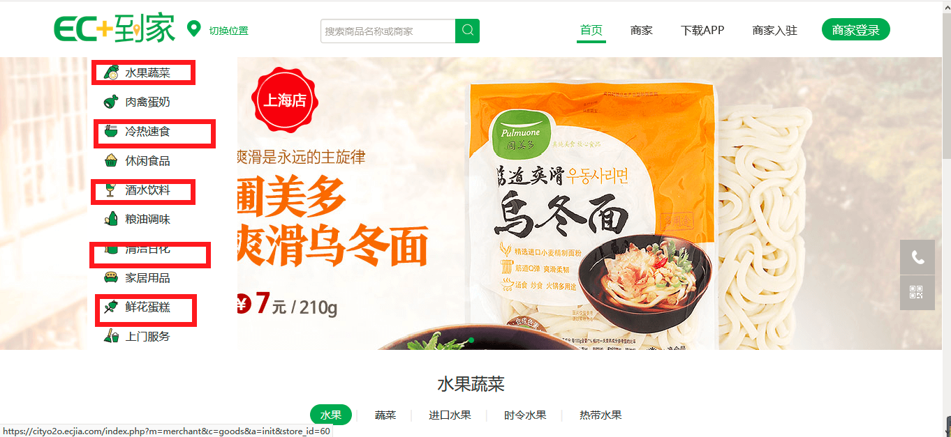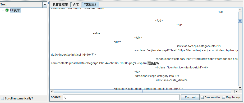 已这个接口为例:https://demodaojia.ecjia.com/ ,提取到页面中的水果蔬菜、肉禽蛋奶、冷热素食。。。。。。