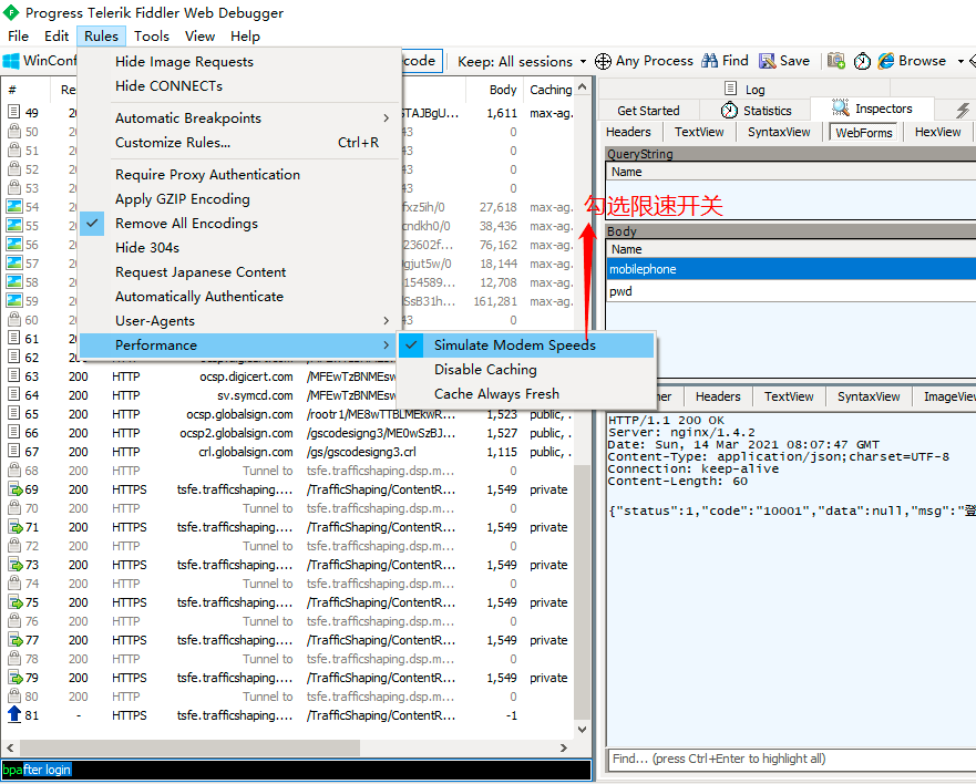 Fiddler-过滤器、断点应用、弱网/限速测试