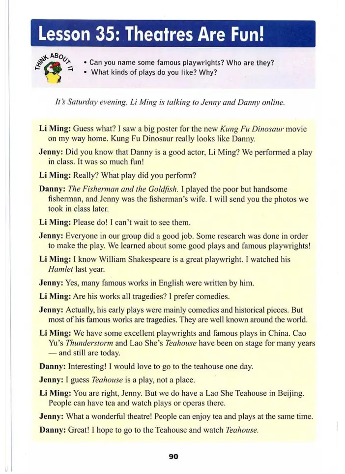 Have you ever seen a movie or a play in a theatre? (Most students raise their hands.)