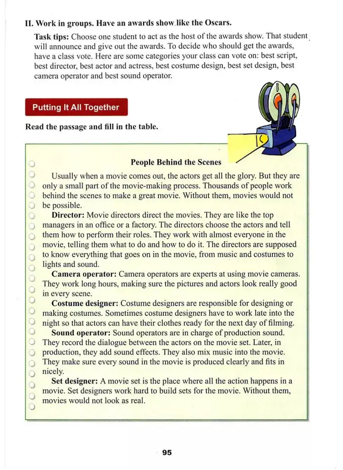 but have you ever been involved in making a movie or a play? (A few students raise their hands.)