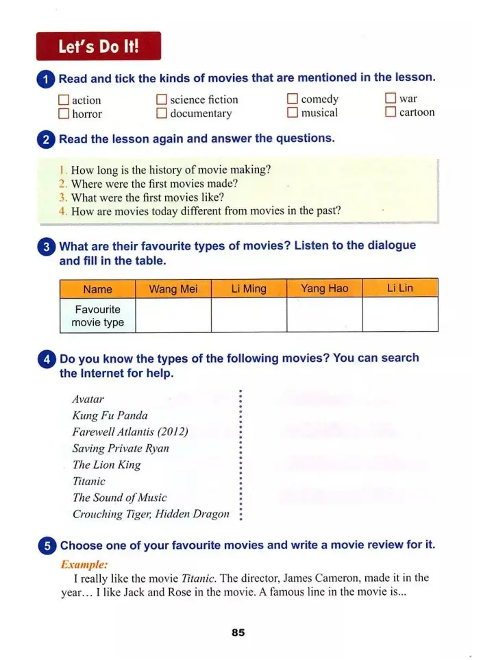 冀教版九年级英语 Unit 6电影和剧院Movies and Theatre 单词课文录音,高清课本,课文翻译,知识点视频