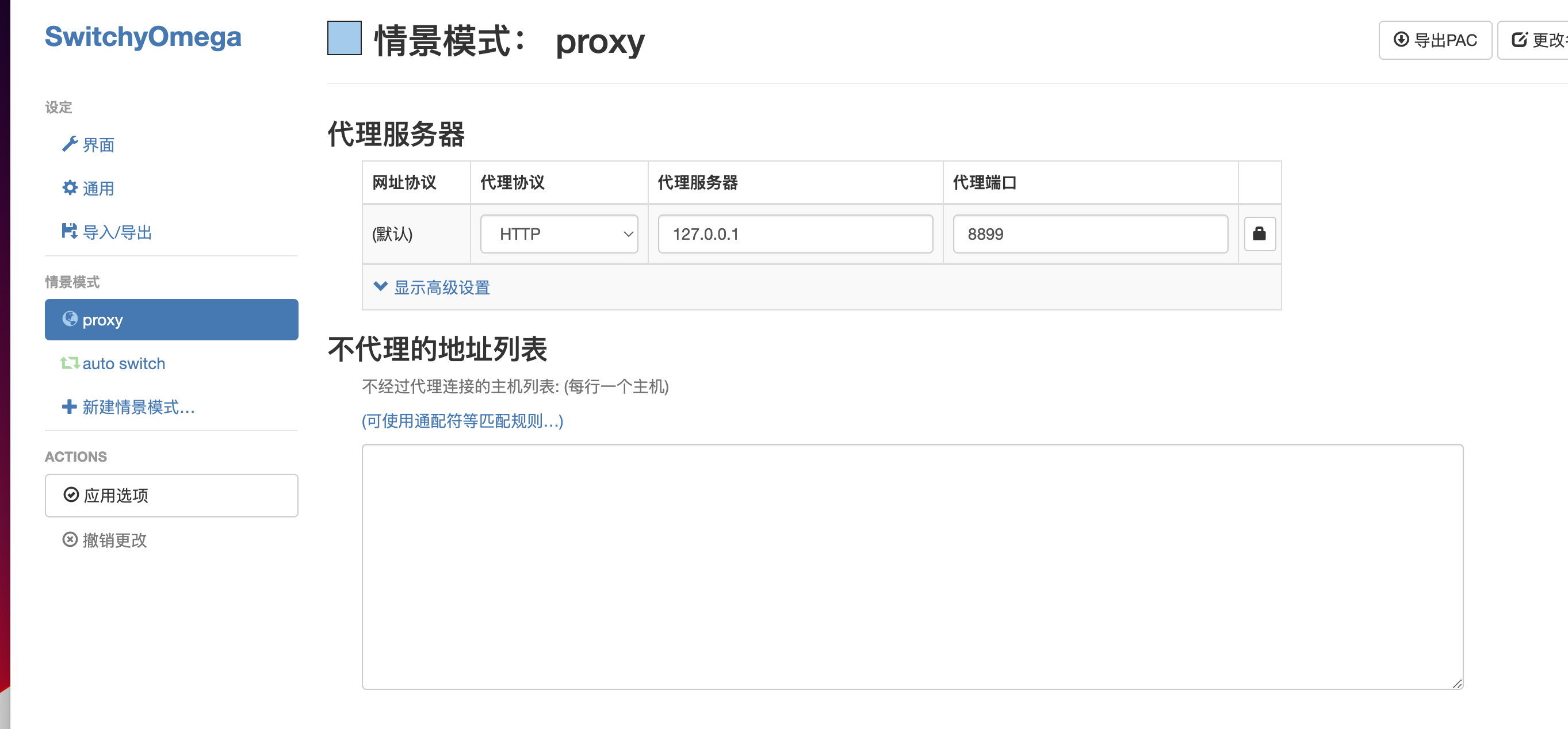 (2) Chrome设置如下: 添加SwitchyOmega为插件,设置代理服务器地址和端口