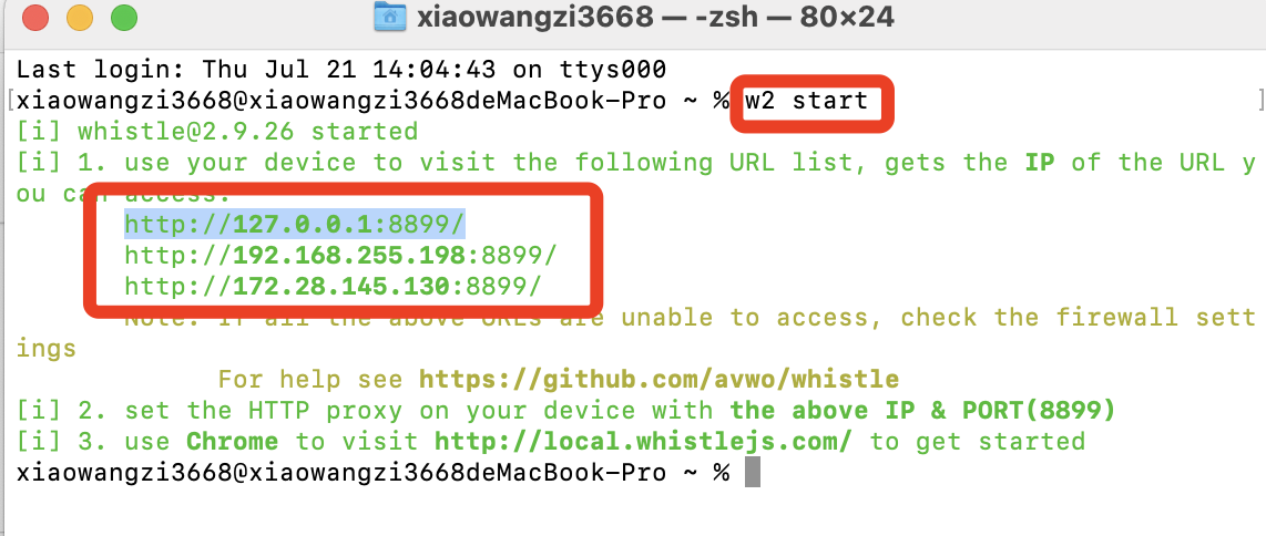 (3) 控制台启动whistle:
