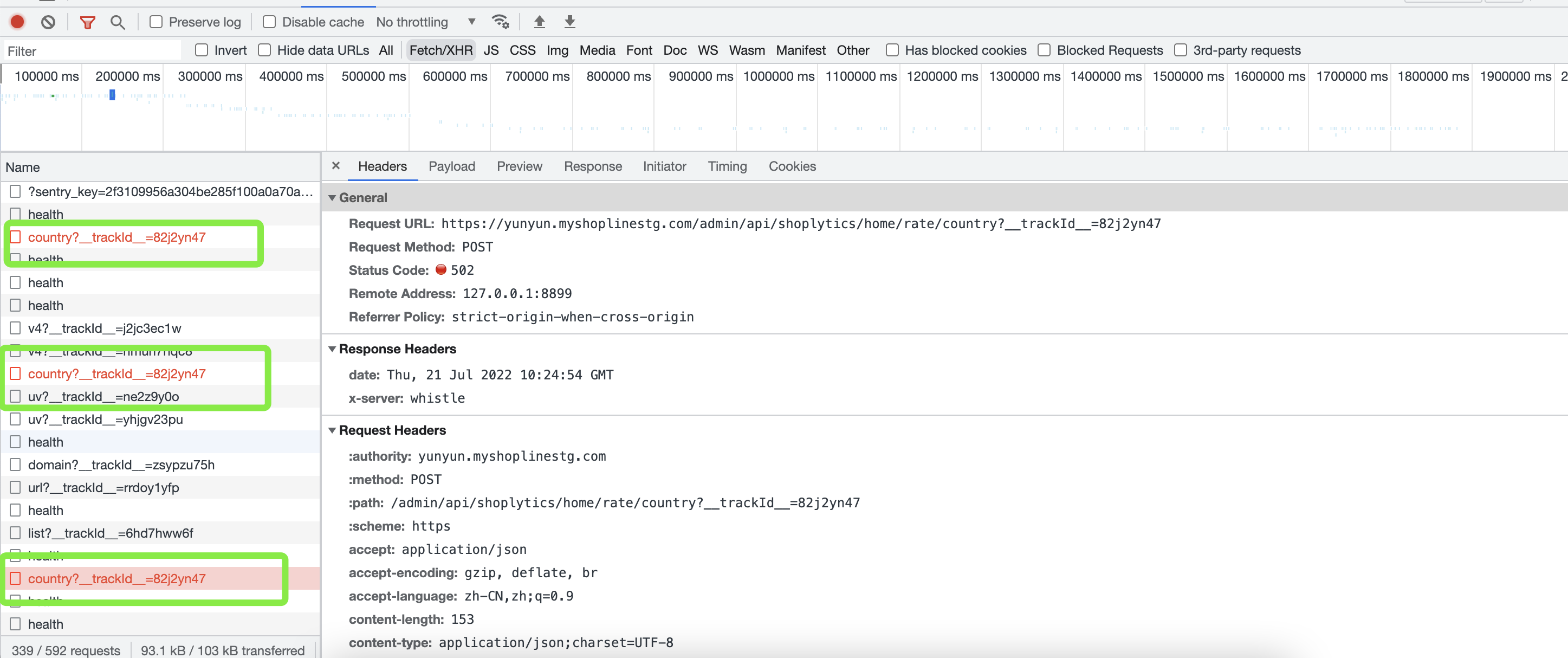 从如下 就能抓取看到前端页面设置的request重试机制生效了,只要请求第一次发送失败,接下来会重试3次