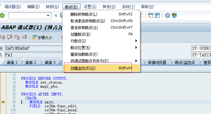 方法2: 使用ABAP调试器的watch point(观察点)功能